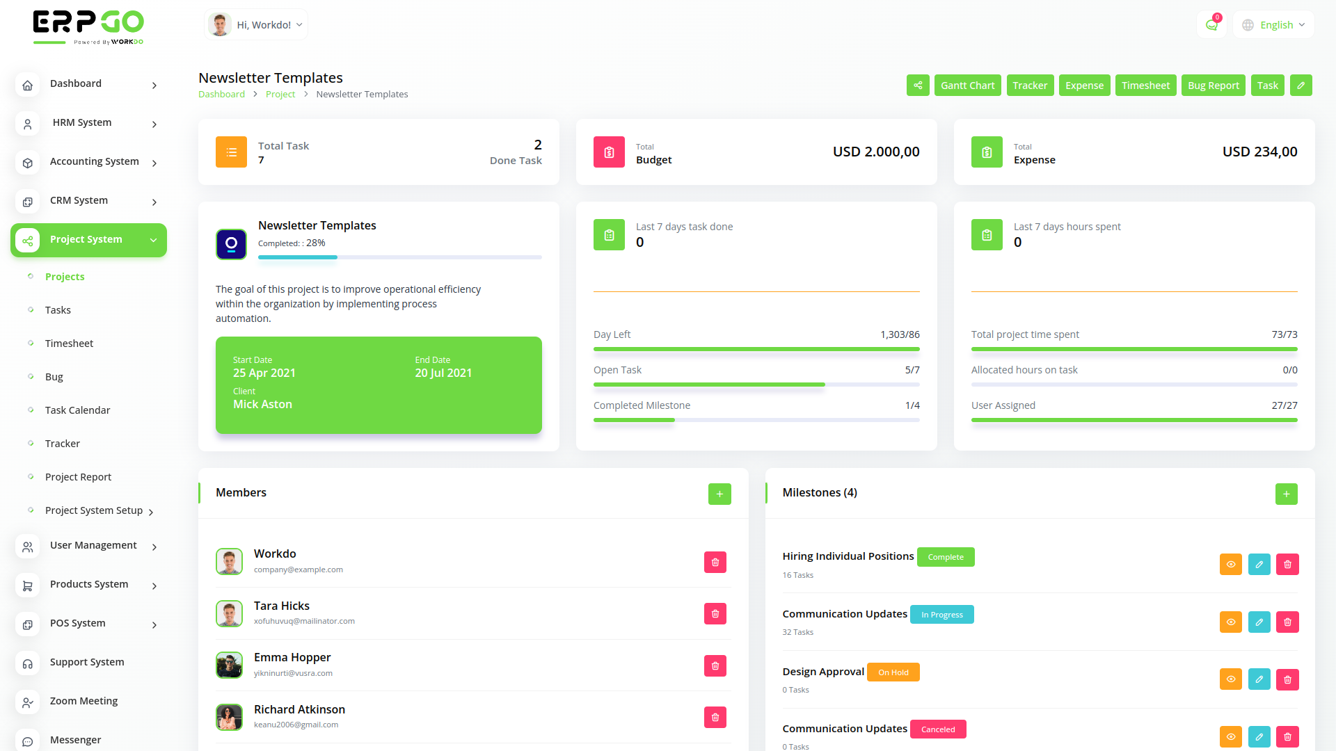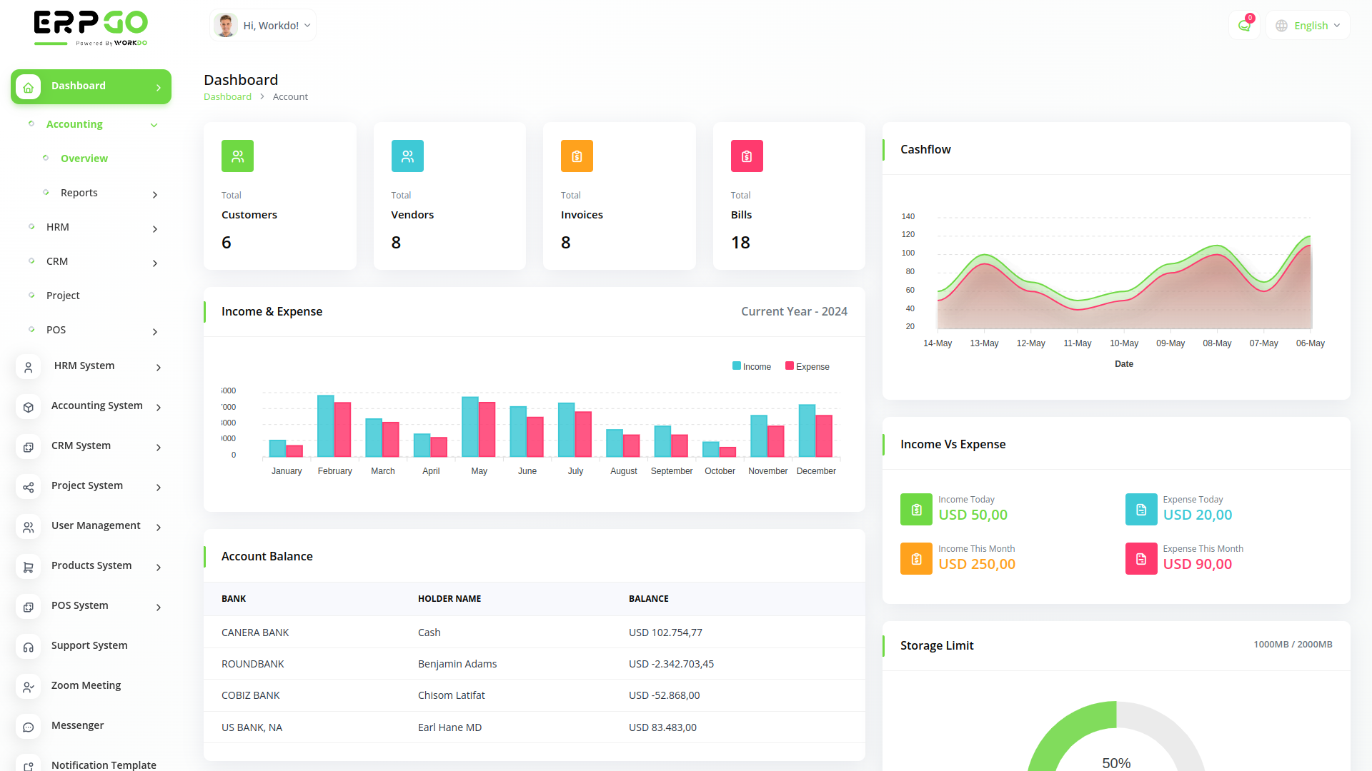 OneKlicks SaaS All In One Business ERP With Project, Account, HRM, CRM & POS
